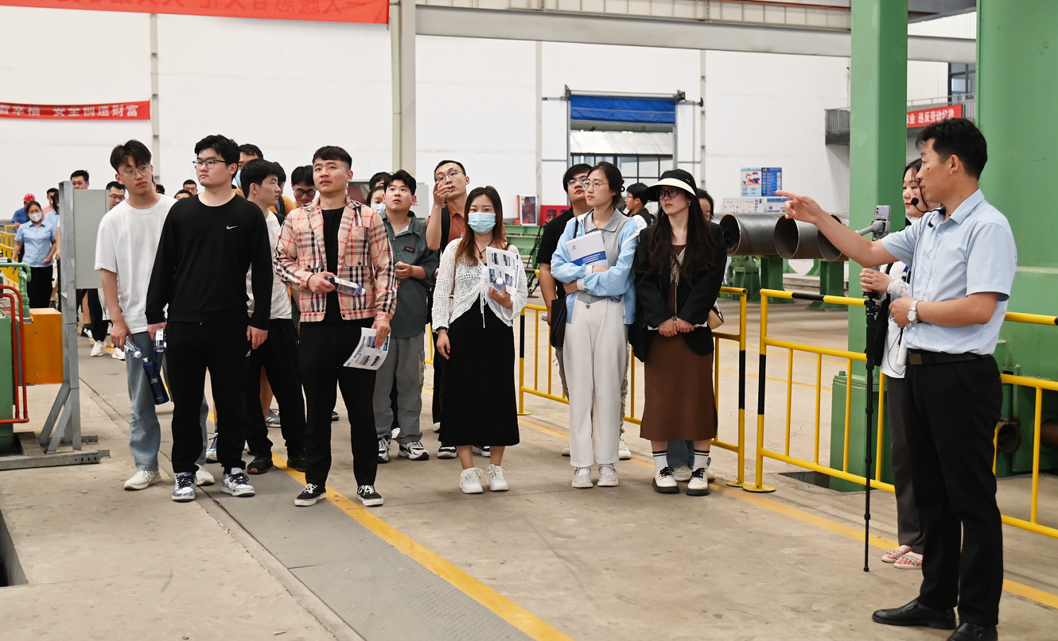 ? ? ? ?隨即(ji),抵達(da)PPH裝(zhuang)配成(cheng)(cheng)品庫與螺旋(xuan)運(yun)動無縫(feng)管裝(zhuang)配成(cheng)(cheng)品庫進行工地在參觀,管材新(xin)公司總監(jian)為煙(yan)臺(tai)實訓基地的學員們(men)基本(ben)介(jie)召(zhao)了企業產(chan)品的工序方法。